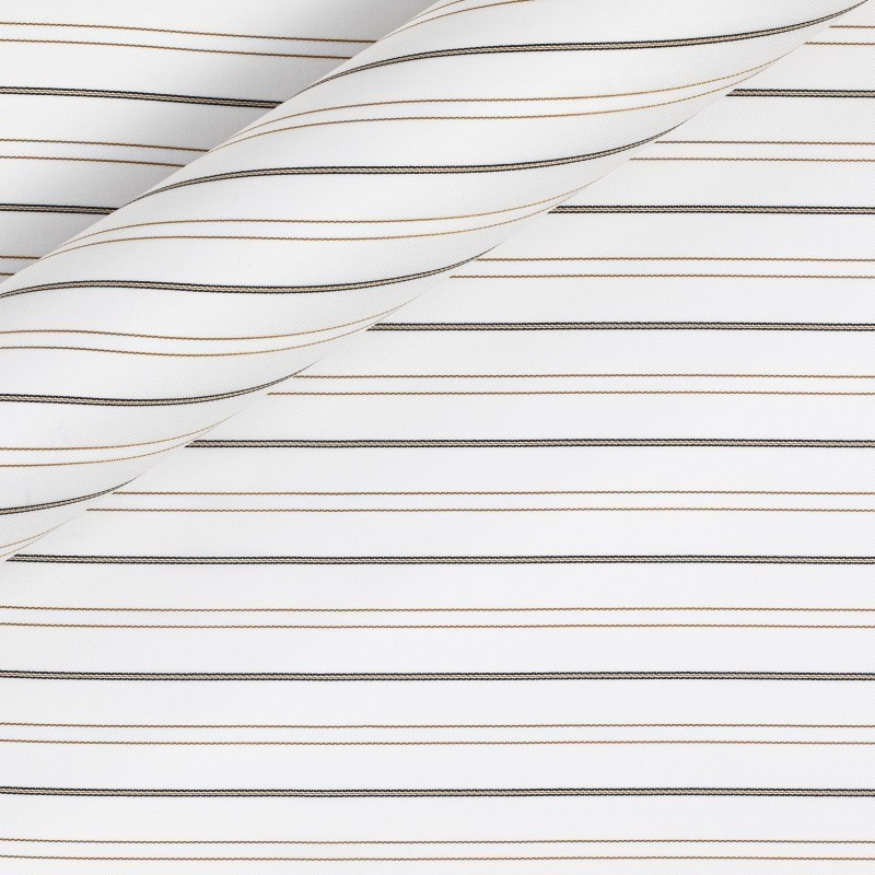 Bemberg cupro lining. Fluid, soft and seductive fabric, exclusive and unique material, which glides on your skin. Available in ivory ground with natural stripes, perfect for clothing that mix comfort, quality and environmental respect.
