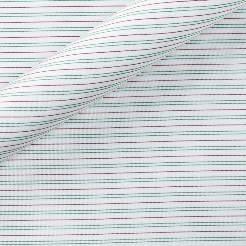 Bemberg cupro lining. Fluid, soft and seductive fabric, exclusive and unique material, which glides on your skin. Available in ivory ground color with bordeaux and green stripes, perfect for clothing that mix comfort, quality and environmental respect.