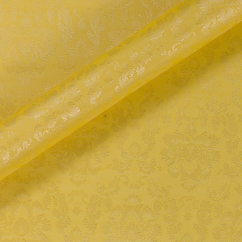 Lining in 100% Cupro Bemberg, Brunello. Dyed in yellow yarn, with a floral design, for a jacket designed for those who are not afraid to dare.