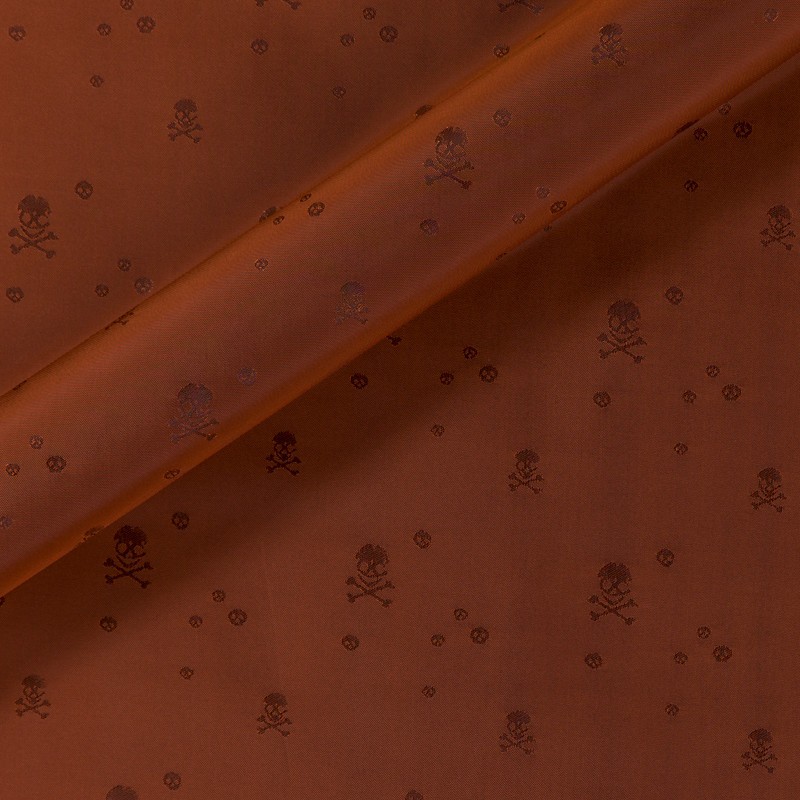 Lining in 100% Cupro Bemberg, Brunello. Dyed in copper-colored yarn, with skulls pattern, for a jacket with an undoubtedly unique creative trait.