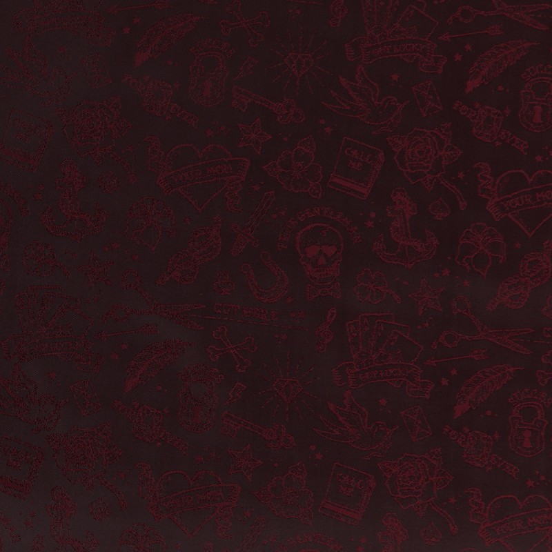 Lining in 100% Cupro Bemberg, Brunello. Dyed in red yarn, with skulls pattern, for a jacket with a trendy expression.