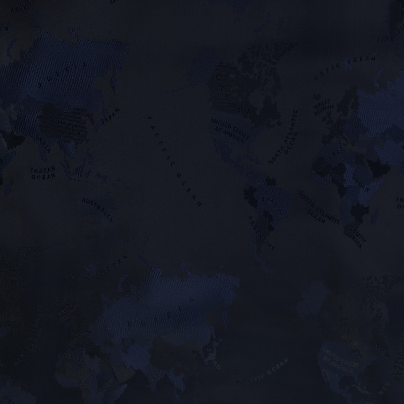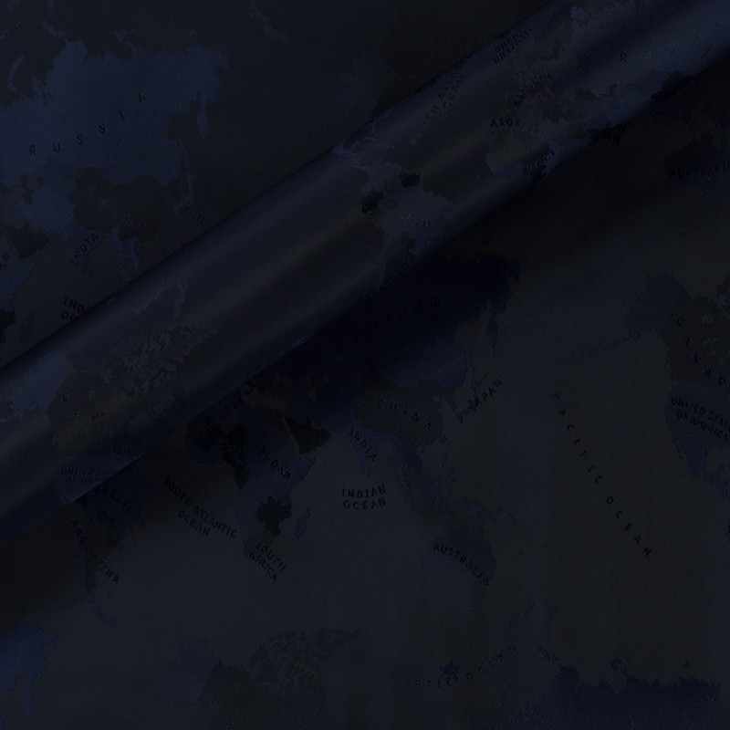 Lining in 100% Cupro Bemberg, Brunello. Dyed in Prussian blue yarn, with a "planisphere" design, for a jacket that plays with creativity.