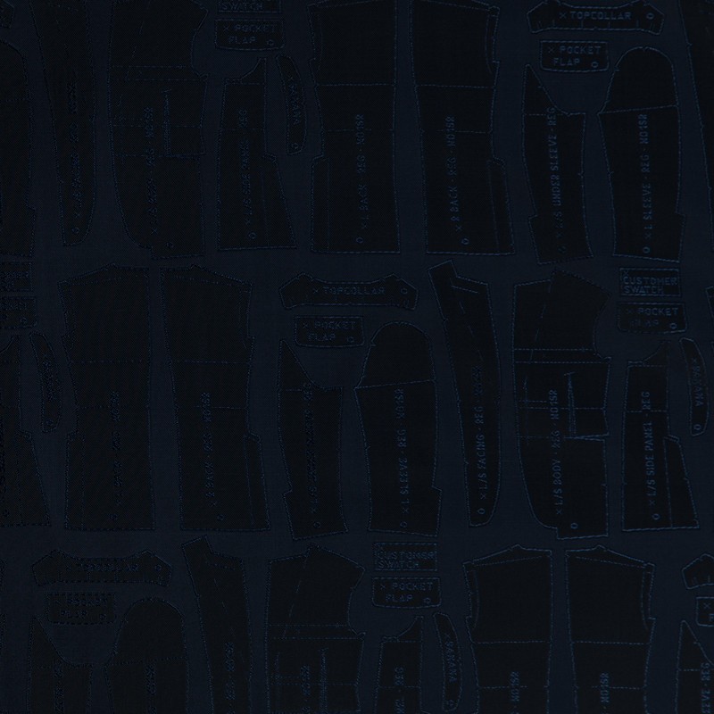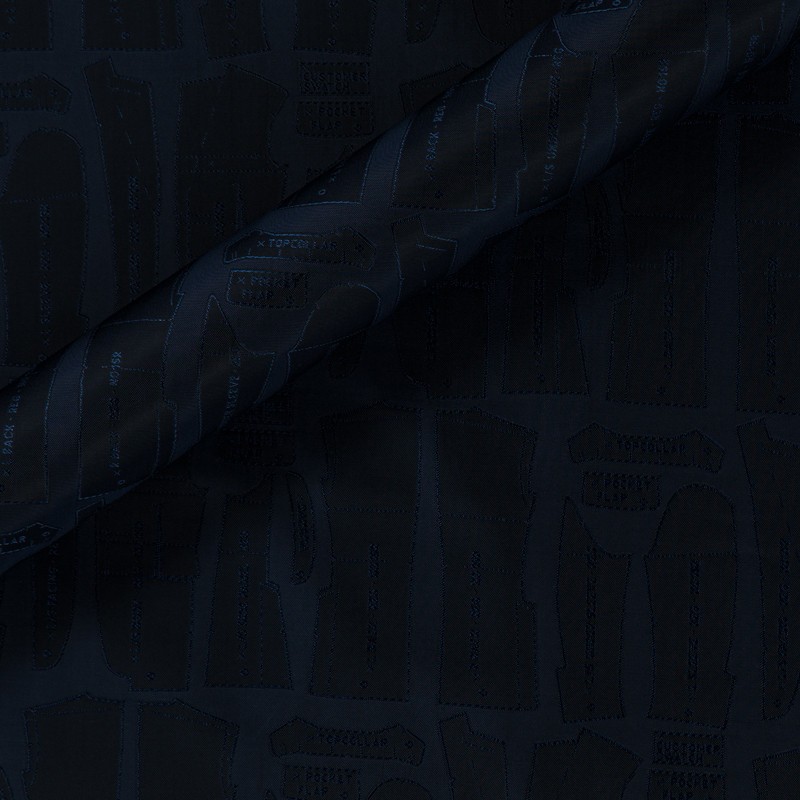 Lining in 100% Cupro Bemberg, Brunello. Dyed in blue yarn, which takes up the design of a pattern, for a jacket that interprets the classic with irony.