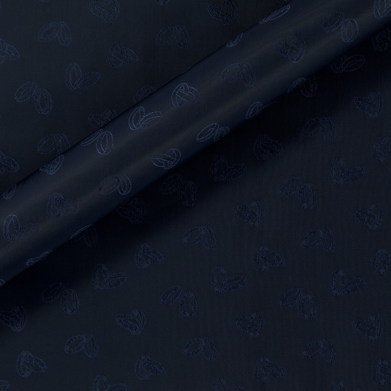 Lining in 100% Cupro Bemberg, Brunello. Dyed in blue yarn, with the design of the wedding rings, for a classic jacket with a sober style.