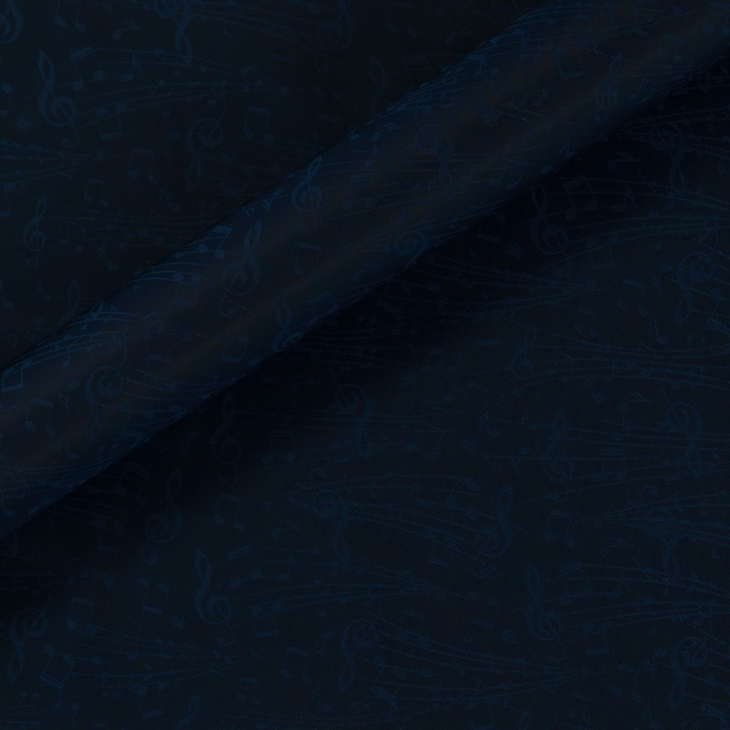 Lining in 100% Cupro Bemberg, Brunello. Dyed in blue yarn, with a pattern that echoes the musical notes, for an elegant and rock jacket.