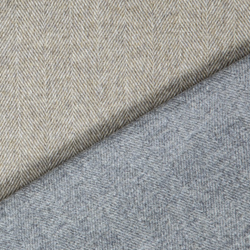 Double-face fabric in a wool–cashmere blend with a herringbone design, ideal for crafting jackets and coats.
