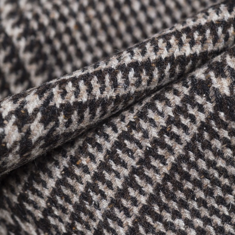 Double-face fabric in a wool–cashmere blend with a herringbone design, ideal for crafting jackets and coats.