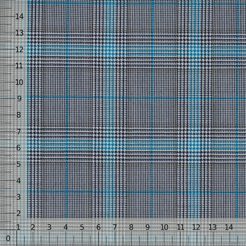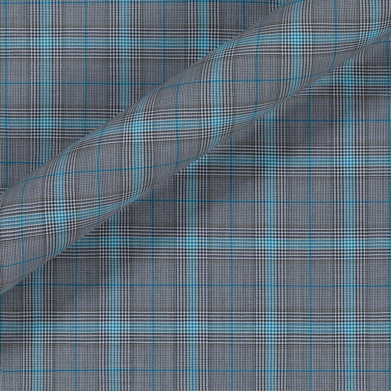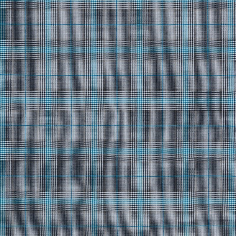 Pure worsted wool fabric, super 130'S natural stretch, Welsh pattern, white and turquoise, for a perfect jacket or suit for any everyday occasion.