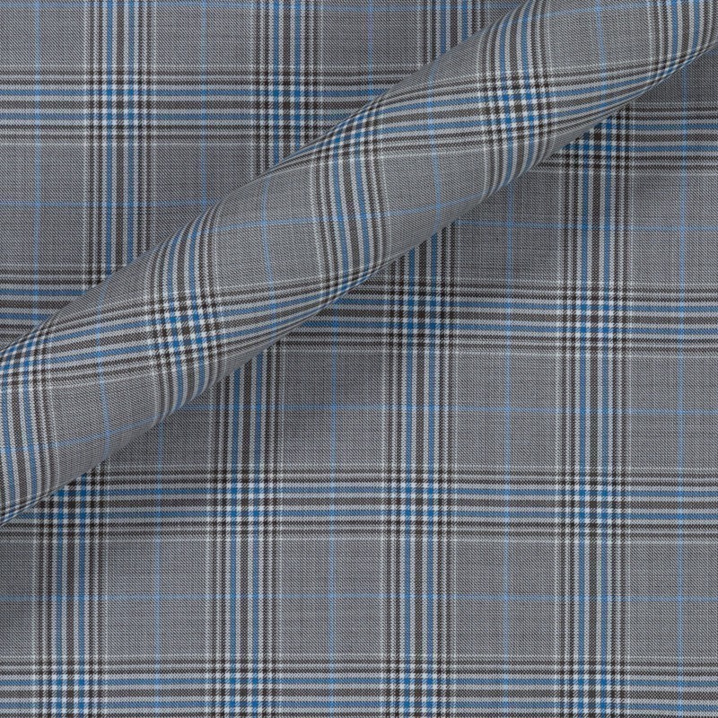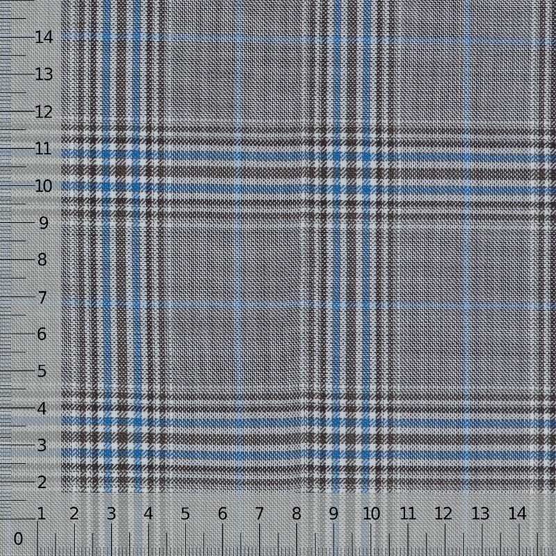 Pure worsted wool fabric, super 130'S natural stretch, wales pattern in brown, white and light blue, perfect for a suit or jacket that completes the wardrobe of the contemporary gentleman with refinement.