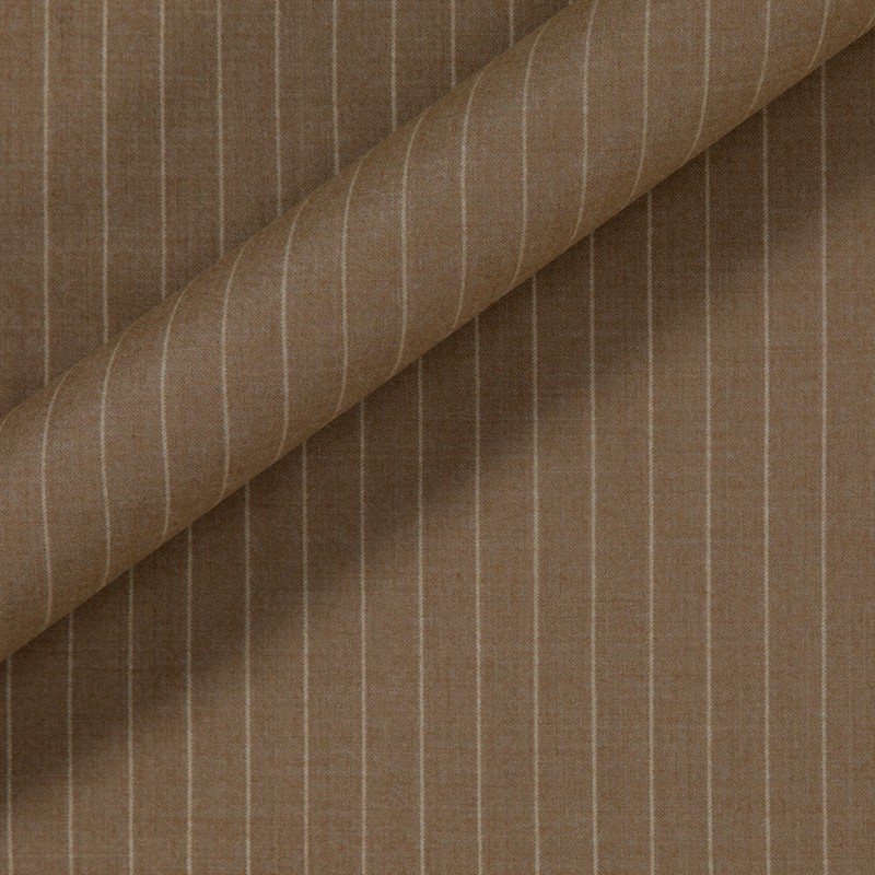 Stretch wool flannel fabric, camel/white pinstripe, for the gentleman who makes elegance his calling card.