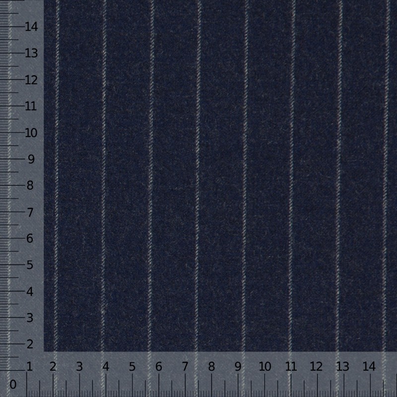 Stretch wool flannel fabric, navy pinstripe, for the making of a suit that expresses all the elegance through a stylish design.