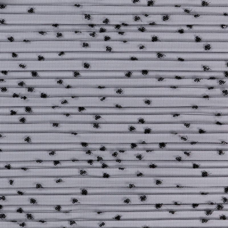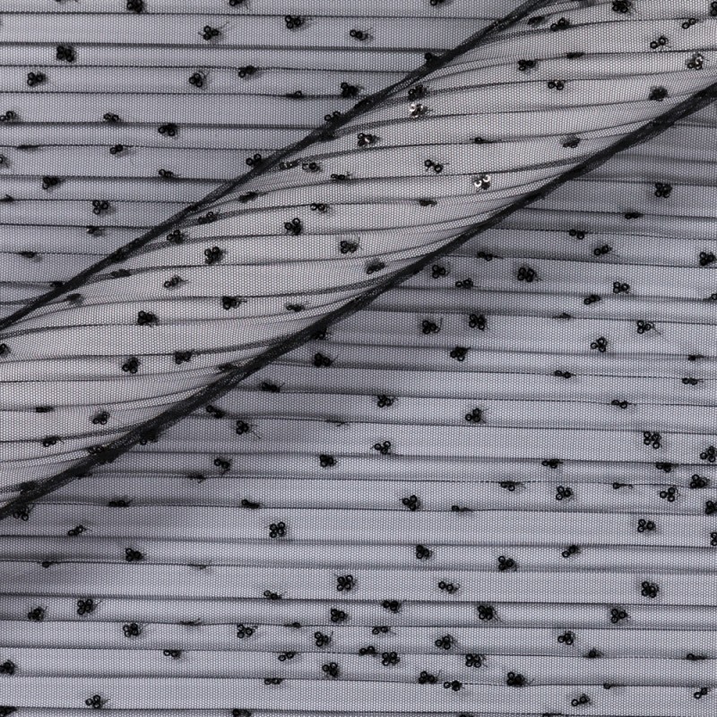 Black pleated tulle fabric with black pailletes embroidery Collection SS24, for a bold and sensual garment.