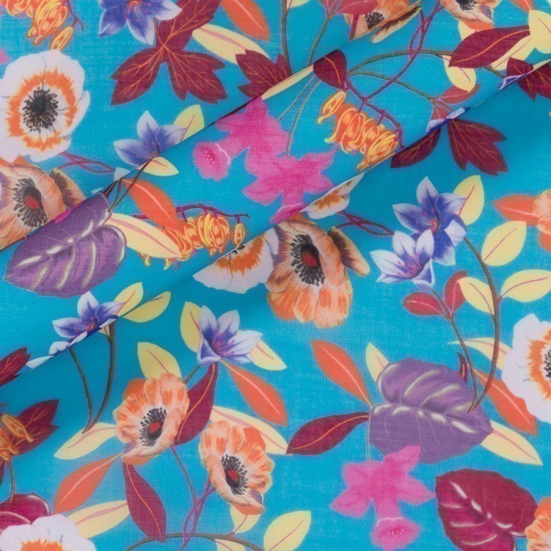 Delicate cotton fabric SS24 Collection, with multicolor floral print.