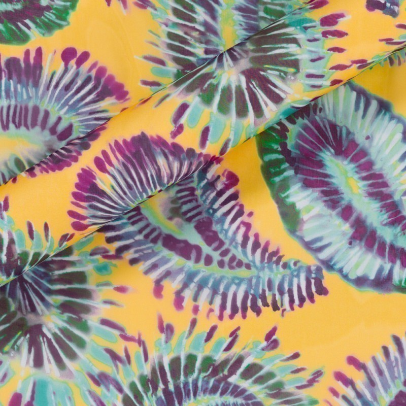 Silk Chiffon SS24 Collection, print with abstract spots for casual and colorful garments.