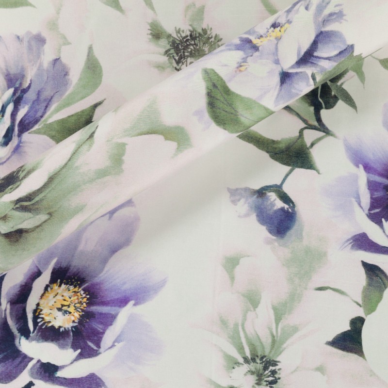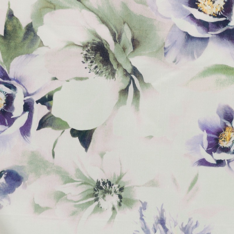 Shantung silk Collection SS24, with floral print for modern and sophisticated jackets and trousers.
