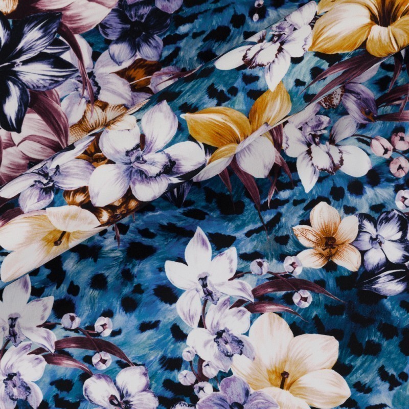 Light Crepe de chine silk Collection SS24, with a floral and animal print design.