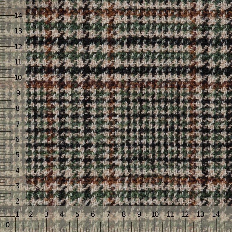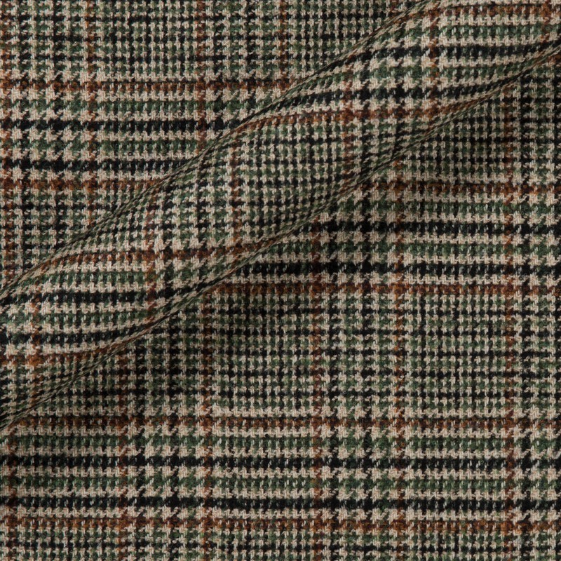 Mixed baby alpaca fabric, Prince of Wales design, green and beige, for a jacket with a timeless classic allure.