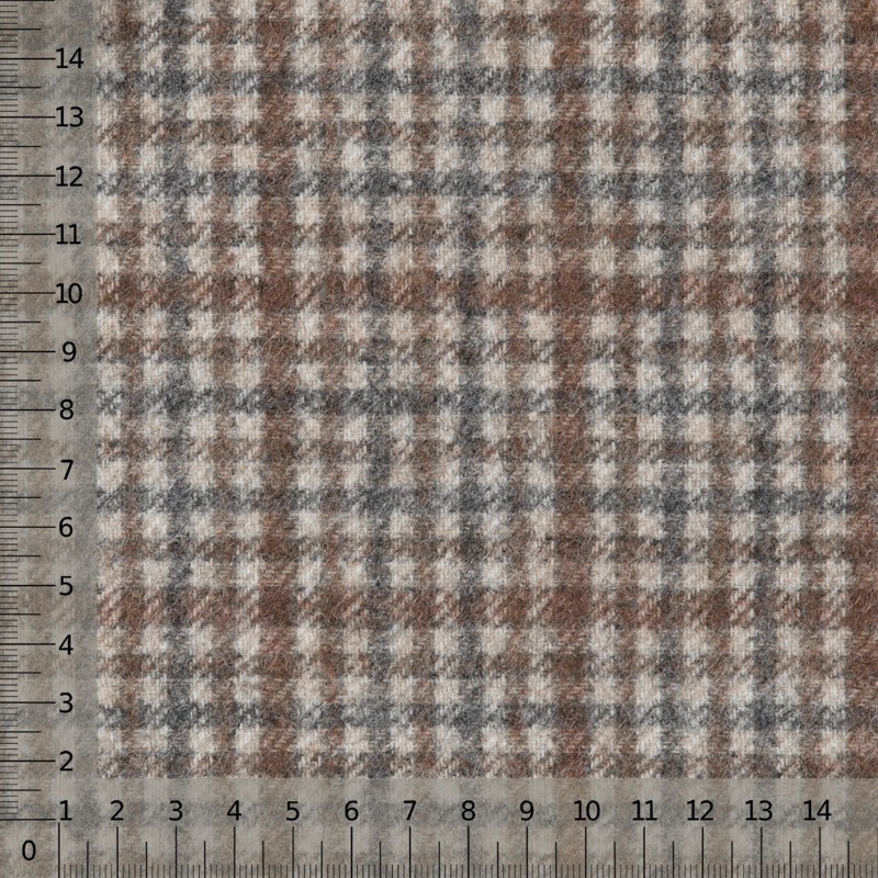 Mixed baby alpaca fabric, damier design, grey, beige and brown, for a jacket that expresses the classic spirit of the wearer.