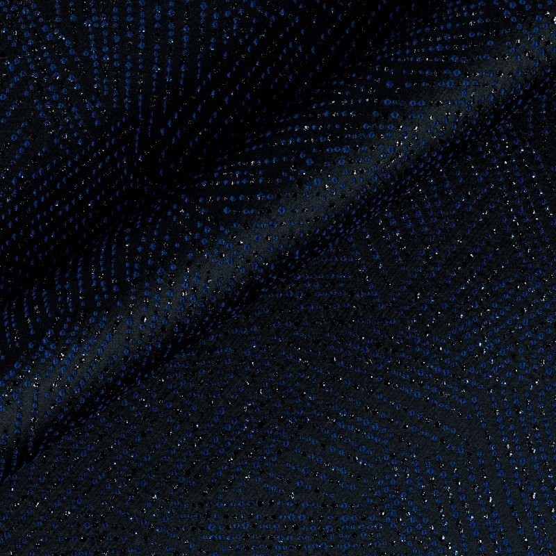 Jacquard lamé fabric with geometric design, in black and blue tones. This fabric is recommended for sartorial jacket for exclusive events.