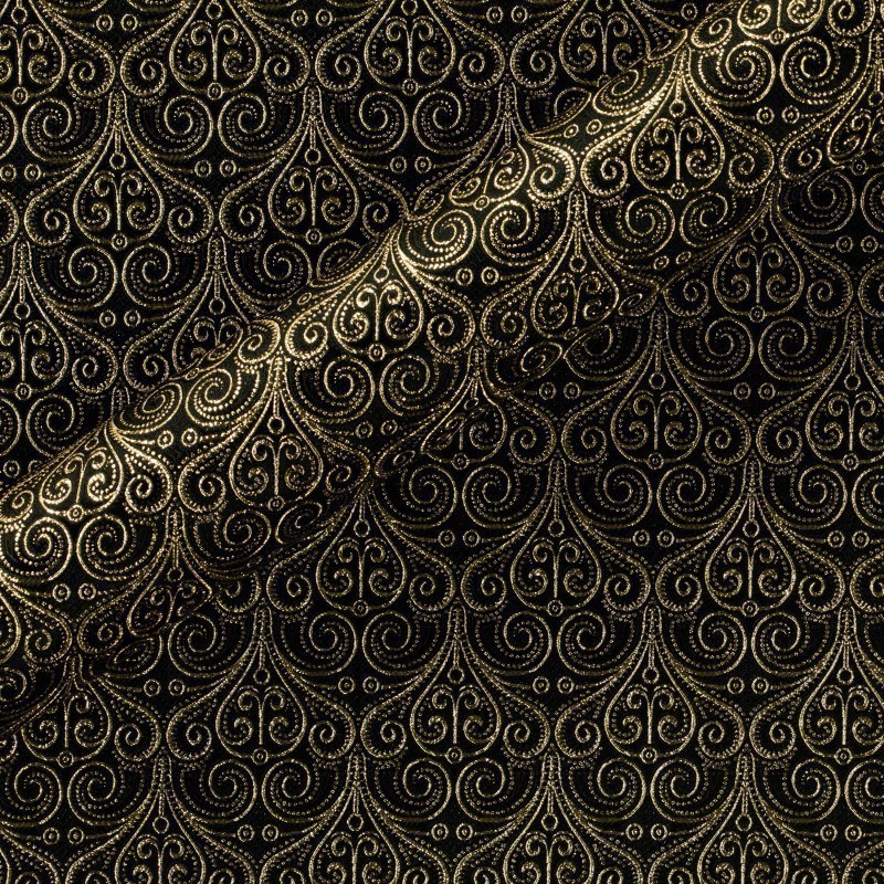 Jacquard lamé fabric with floral design, in black and gold tones. This fabric is recommended for sartorial jacket for exclusive events.