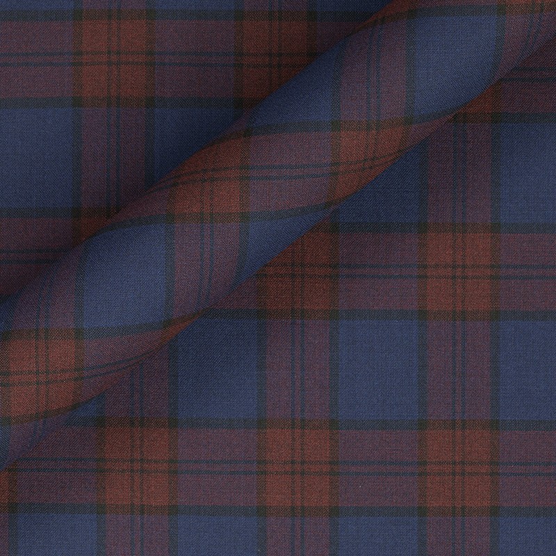Fancy fabric,in pure wool,made with higly twisted yarns.In shades of blue and red.Fabric guarantees natural crease-resistance,perfect for tailoring suits and dandy business travel style.