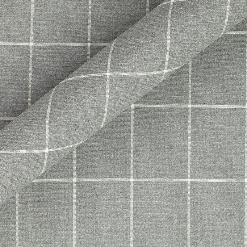 Fancy fabric,in pure wool,made with higly twisted yarns.In shades of light grey and white.Fabric guarantees natural crease-resistance,perfect for tailoring suits and dandy business travel style.