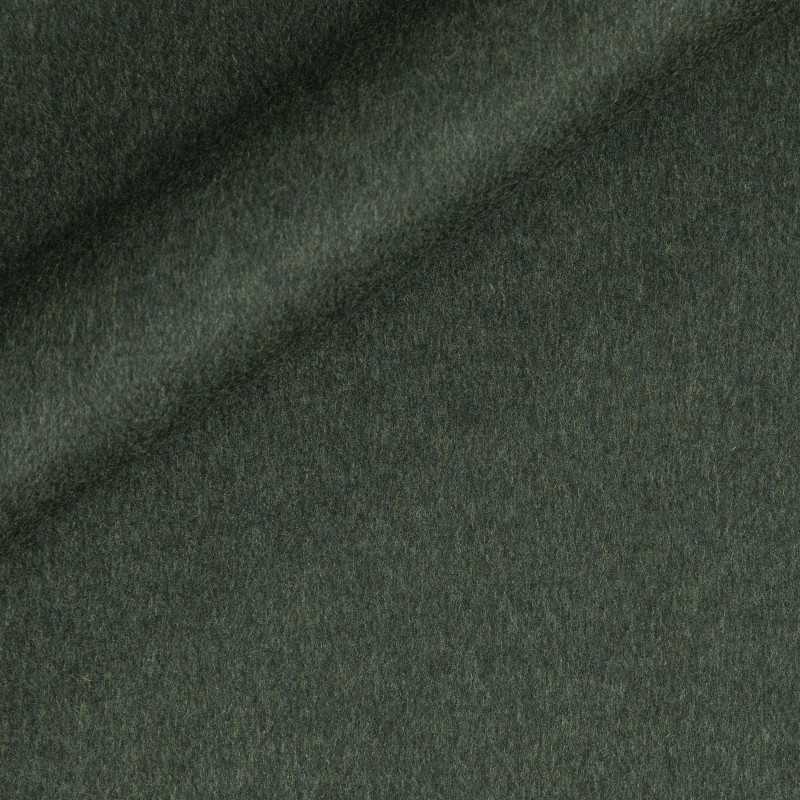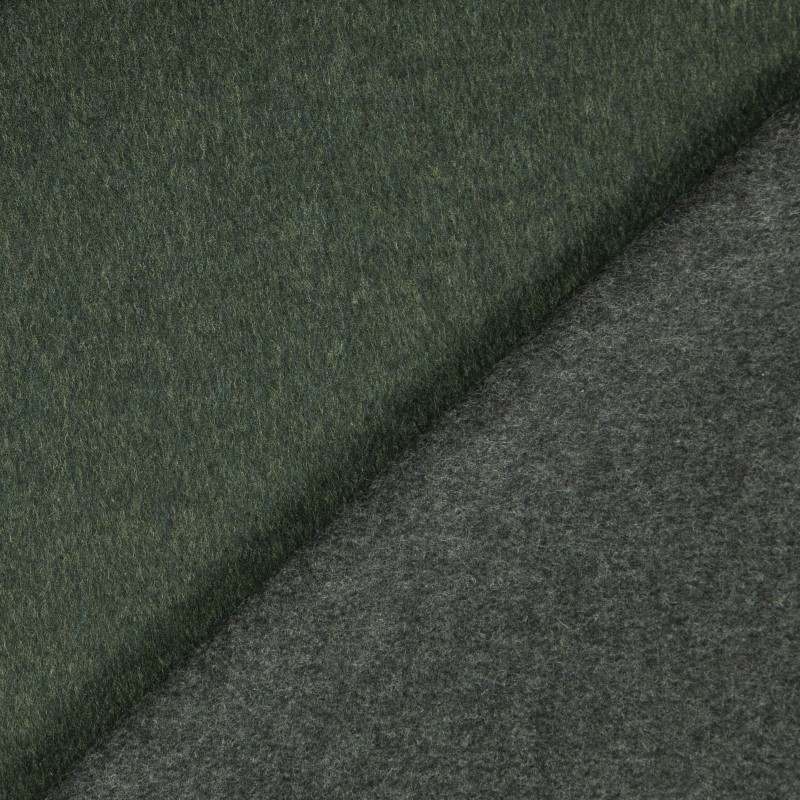Fabric double-side Chevron in pure virgin wool, silk and cashmere dark green on front side and dark grey on back side. This kind of fabric is perfect to create a tailored coat.