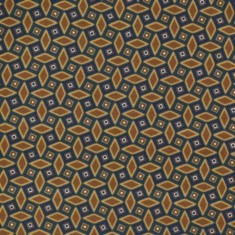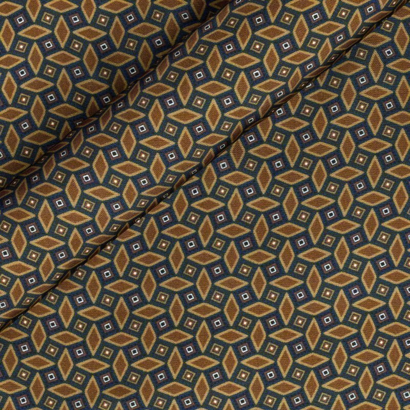 Printed lining in viscose twill, Carnet, designs of the world of ties, in blue and mustard tones. Fabric suitable to customize the inside of the jacket.