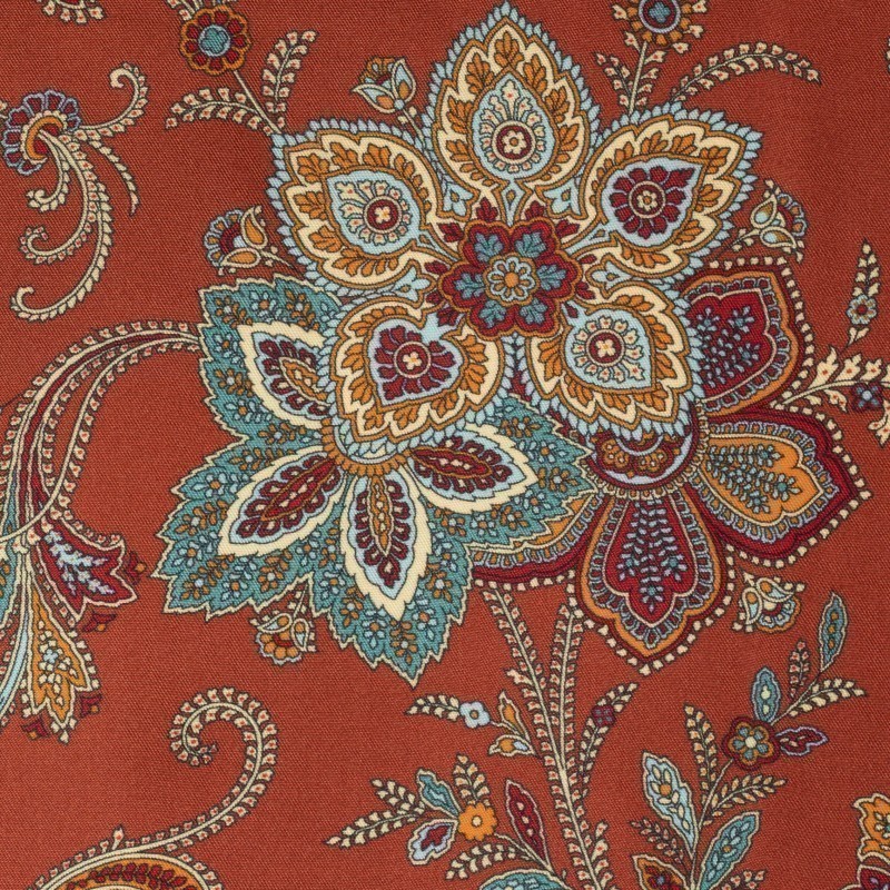 Printed lining in viscose twill, Carnet, with paisley design, in rust, peacock and cream tones. Fabric suitable to customize the inside of the jacket.