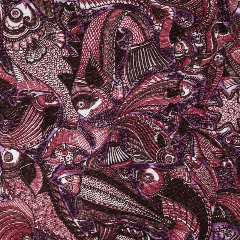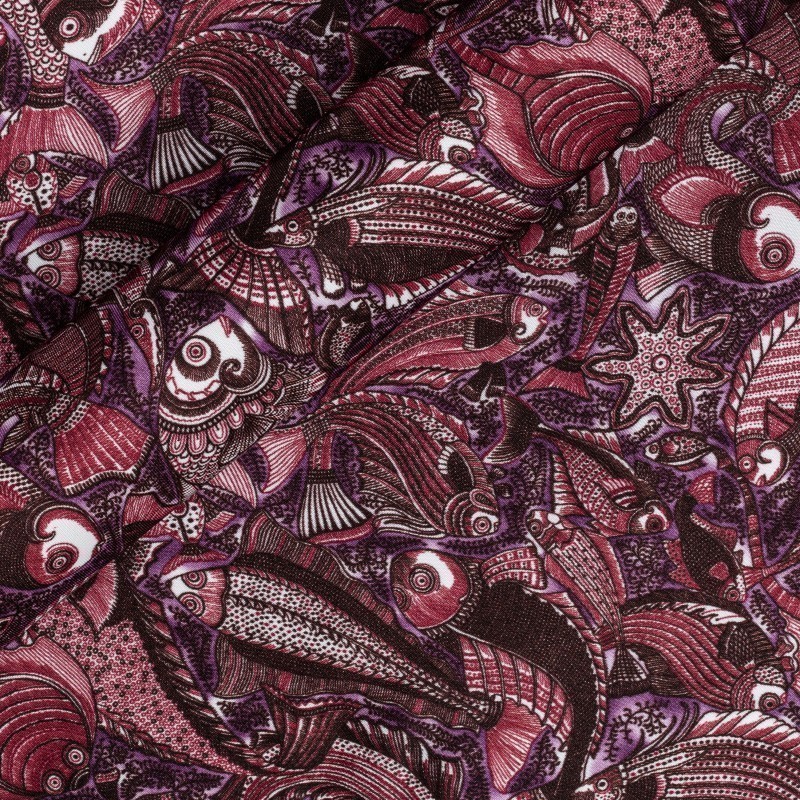 Printed lining in viscose twill, Carnet, fantasy design, bordeaux and violet tones. Fabric suitable to customize the inside of the jacket.