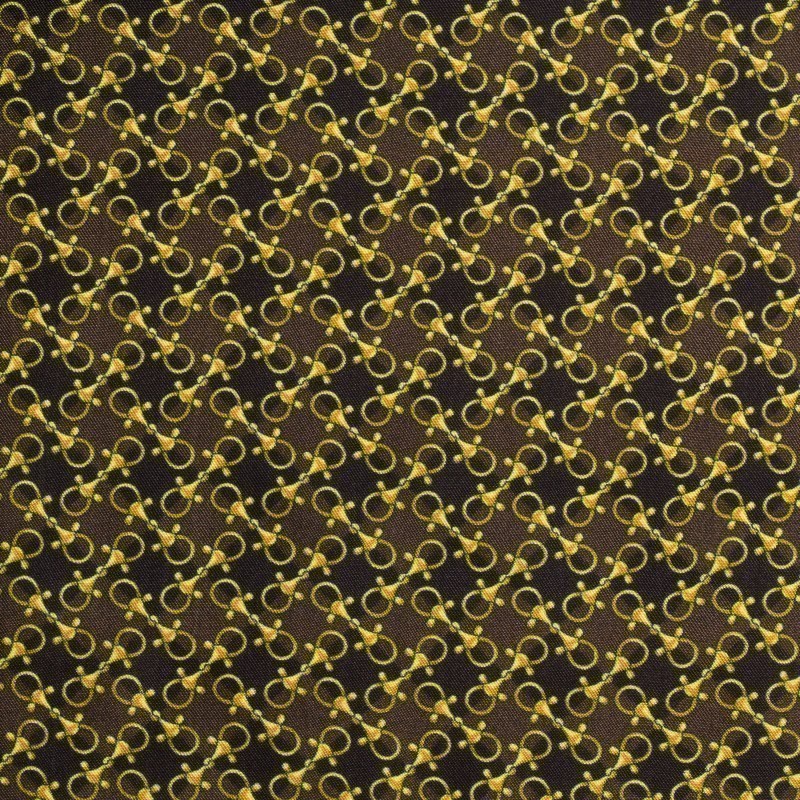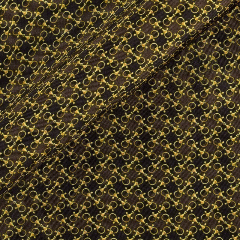 Printed lining in viscose twill, Carnet, equestrian-inspired designs, in hazelnut and gold tones. Fabric suitable to customize the inside of the jacket.