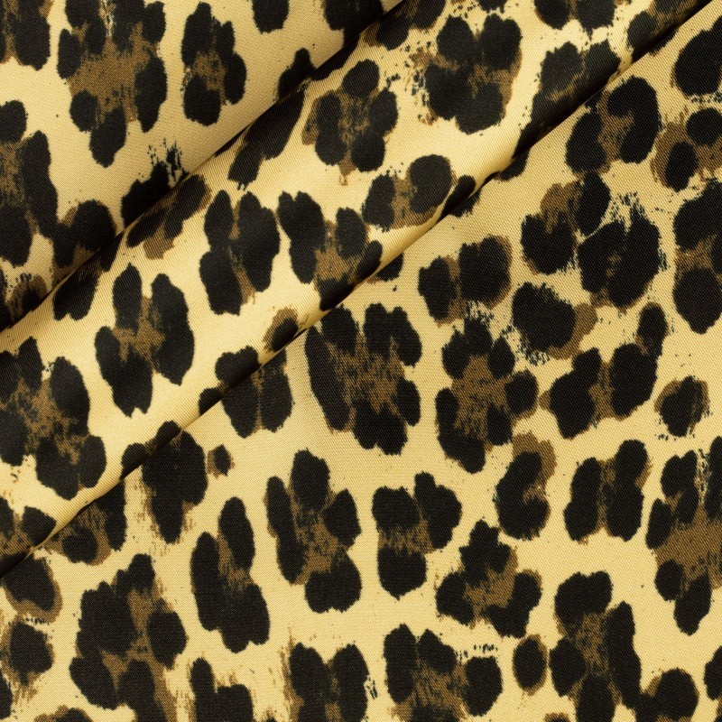 Printed lining in viscose twill, Carnet, animal printed, in hazelnut and beige tones. Fabric suitable to customize the inside of the jacket.