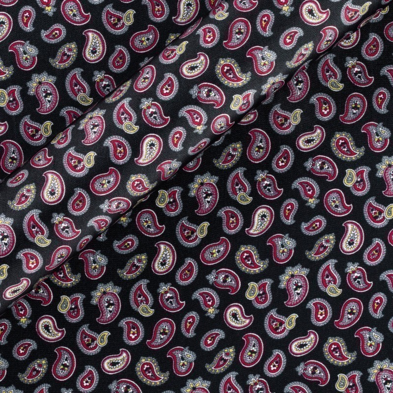 Printed lining in viscose twill, Carnet, designs of the world of paisley, in black, bordeaux, grey and white tones. Fabric suitable to customize the inside of the jacket.