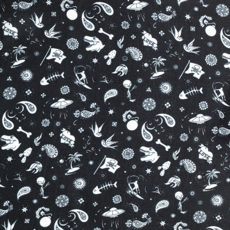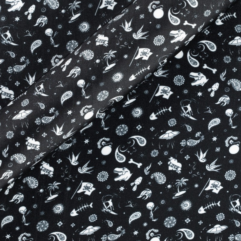 Printed lining in viscose twill, Carnet, fantasy design, in black and white tones. Fabric suitable to customize the inside of the jacket.