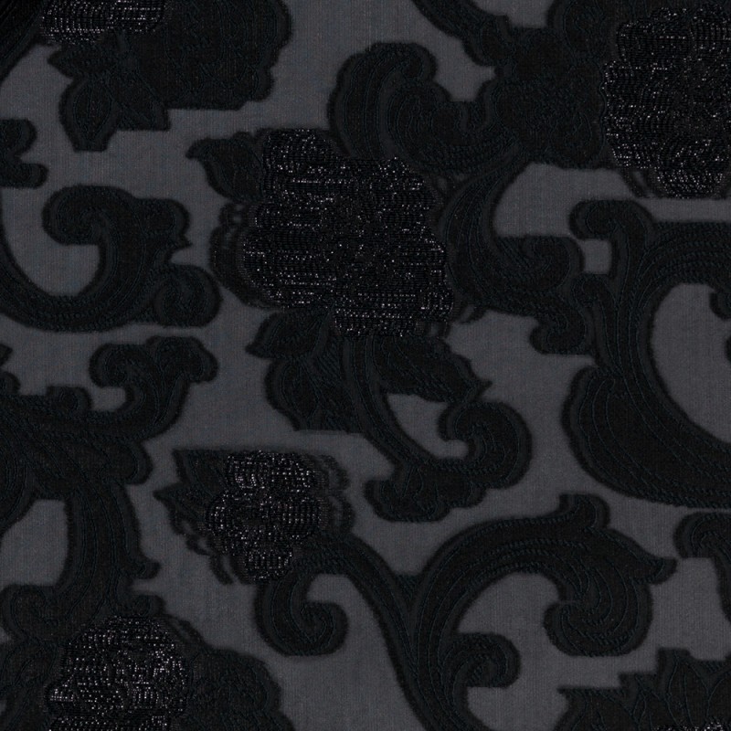 Floral design fil coupé fabric SS24 Ungaro collection, the black pattern makes it suitable for creating elegant dresses and blouses.