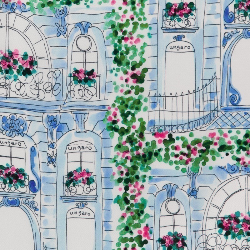 Satin crepe silk fabric Ungaro Collection SS24, special figurative design perfect for ultra-modern and trendy garments.