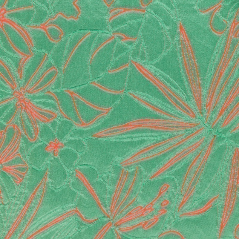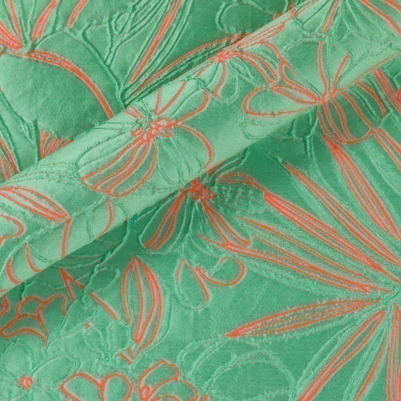 Mint green jacquard fabric with contrasting flowers SS24 Ungaro Collection, perfect for an elegant and sophisticated model.
