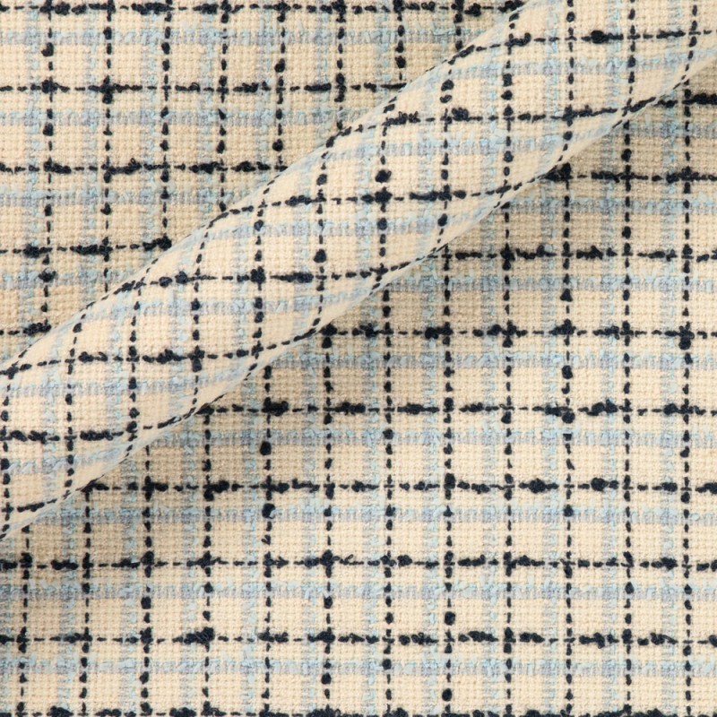 Ungaro collection SS25 check fabric in shades of ivory blue and midnight blue,suitable for suits and jackets