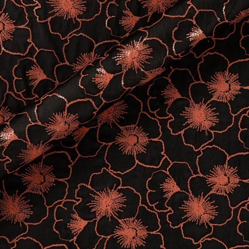Embroidery on Ungaro collection SS25 silk georgette fabric with floral design