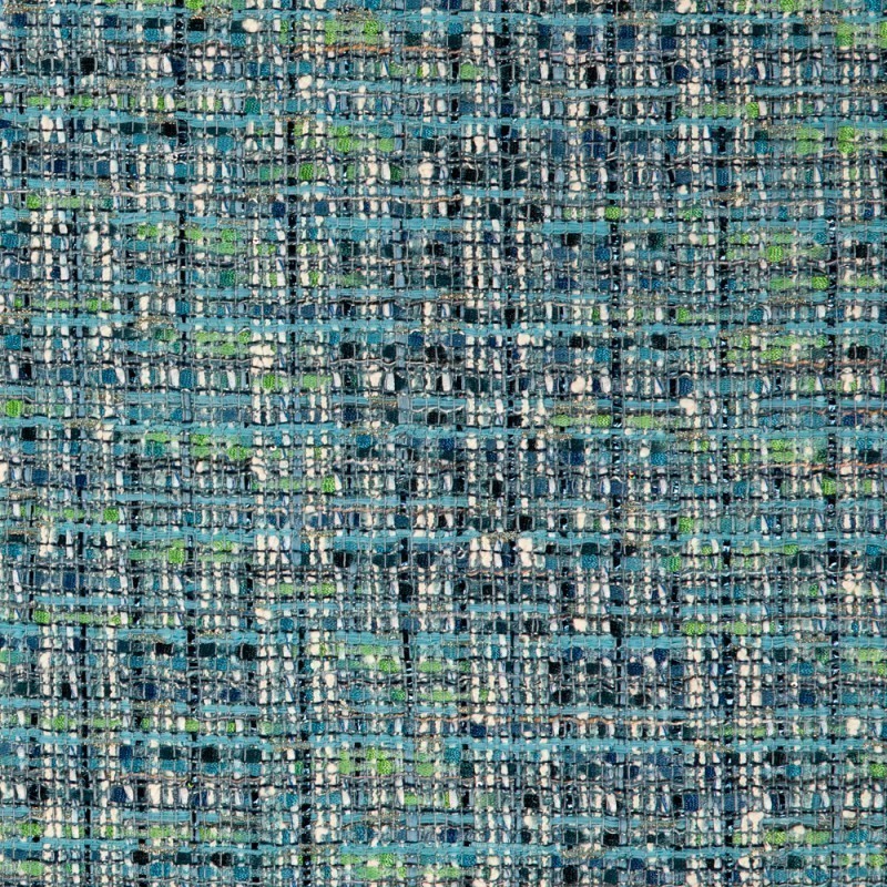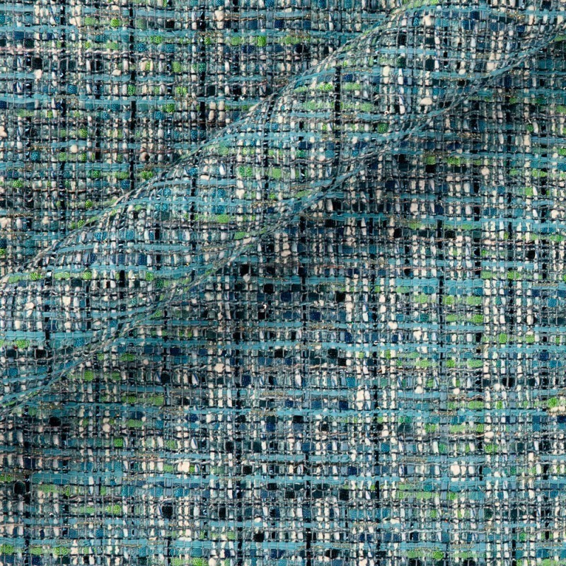 Ungaro collection SS25 tweed fabric in shades of blue with patterned fl and lurex