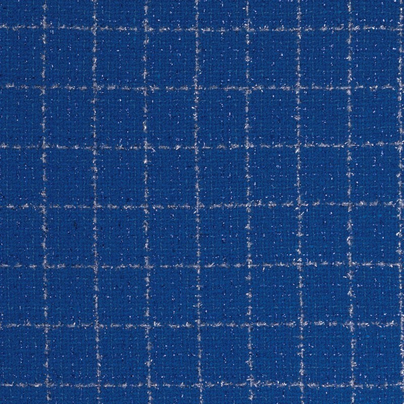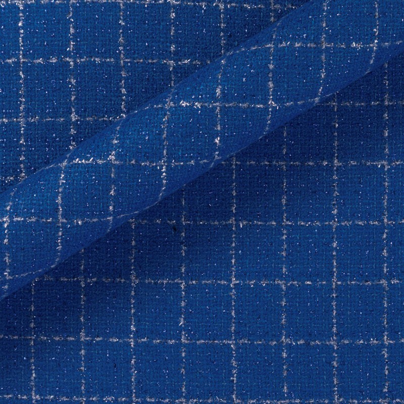 Check fabric with silver lurex in shades of blue from the Ungaro SS26 collection, suitable for jackets