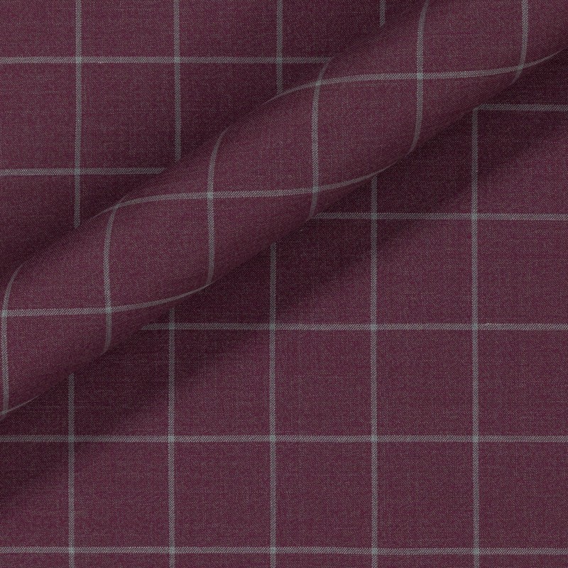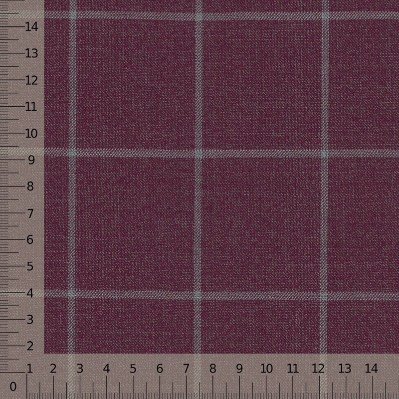 Tessuto in pura lana pettinata , super 130'S natural stretch, fantasia over check viola e grigio, perfetto per un completo adatto anche alle occasioni formali.