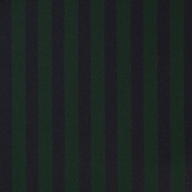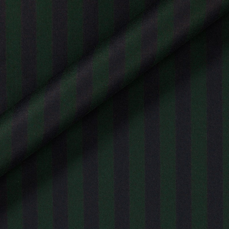Tessuto flanella di lana stretch, regimental blu e verde, per un abito che attraverso un gioco di cromie racconta tutta la raffinatezza del gentleman moderno.