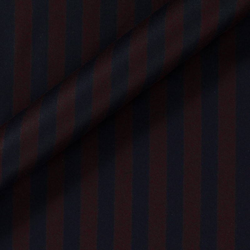Tessuto flanella di lana stretch, regimental blue e bordeaux, per la confezione di un abito classico che veste un gentleman dallo spirito urban.