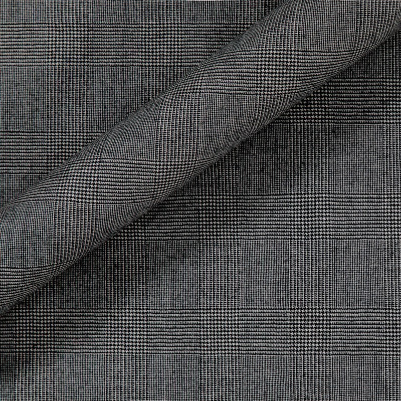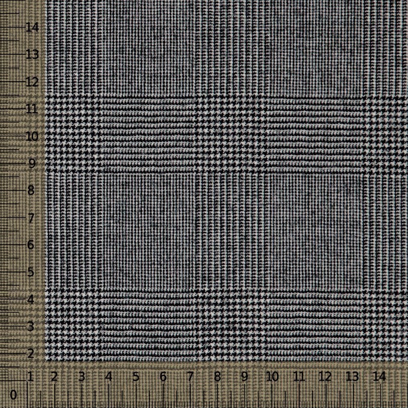 Tessuto flanella di lana stretch, fantasia Principe di Galles, bianco e nero, per la confezione di un abito o di una giacca espressione di una raffinata sartorialità.