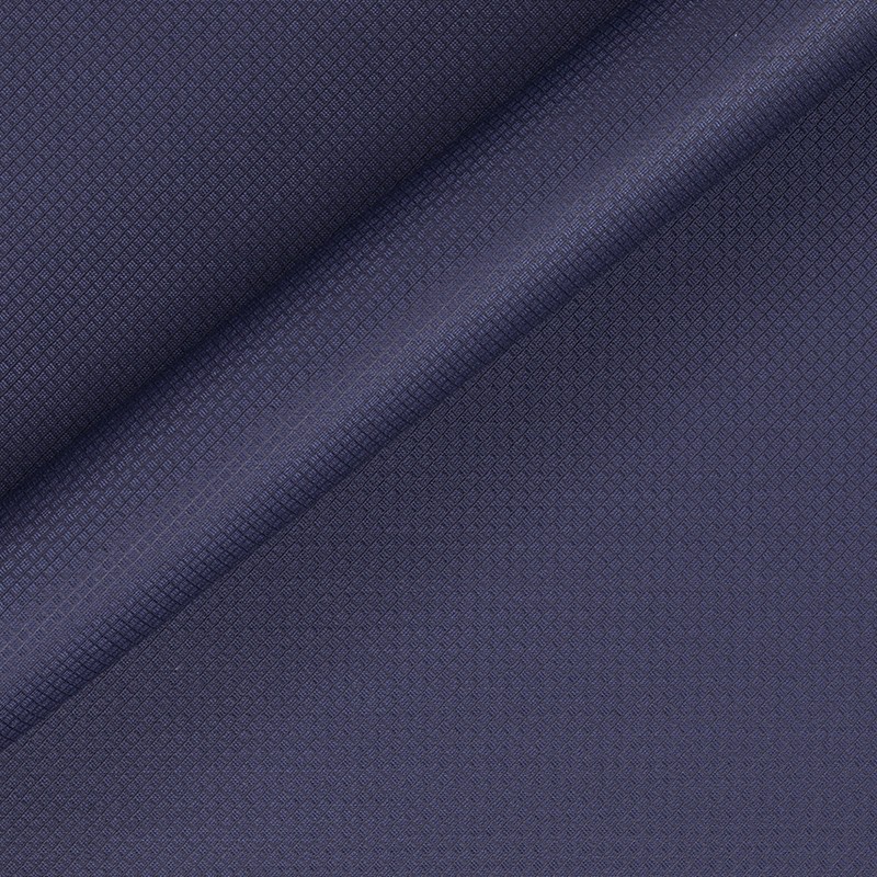 Tessuto micro jacquard, in lana e seta, nella tonalità del blu marino. Adatto alla realizzazione di eleganti abiti da cerimonia.