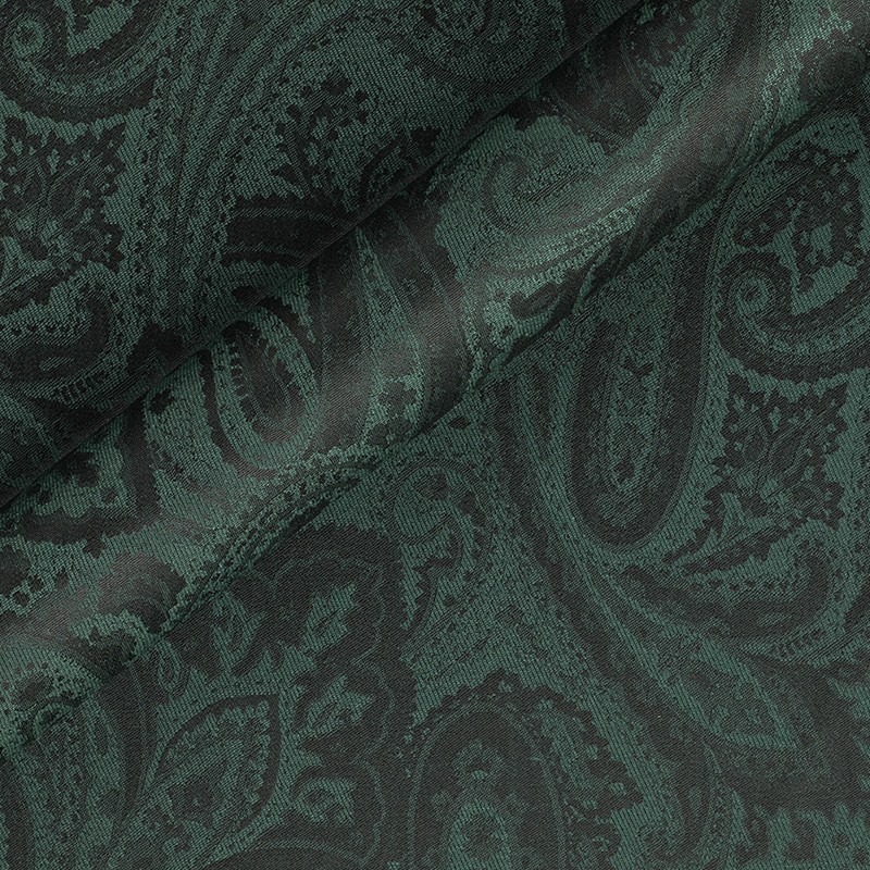 Tessuto jacquard, in lana e seta, nella tonalità del verde. Adatto alla realizzazione di eleganti abiti da cerimonia.