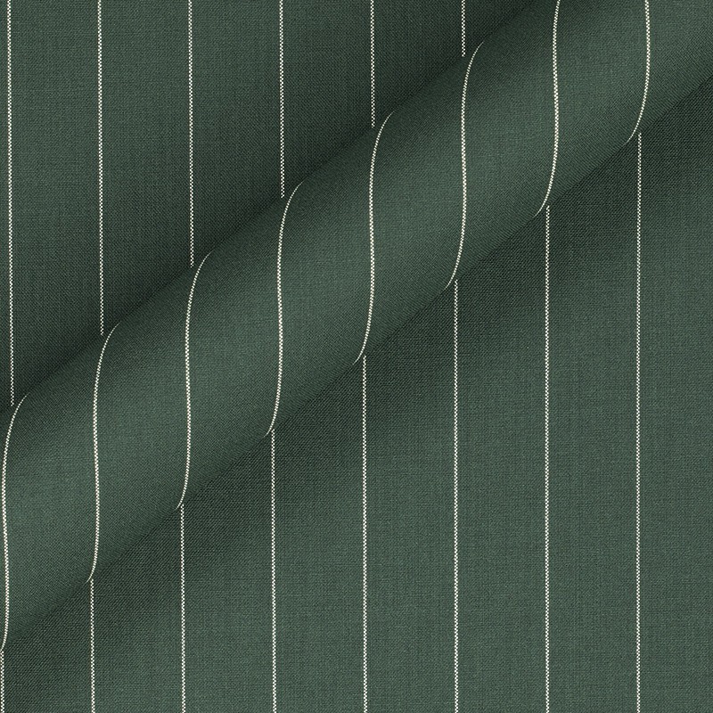 Tessuto fantasia, in pura lana, realizzato con filati ritorti ad alte torsioni. Nei toni del verde con riga bianca. Garantisce una naturale resistenza alla piega, perfetto per confezionare capi sartoriali, dandy business travel, della massima qualità.