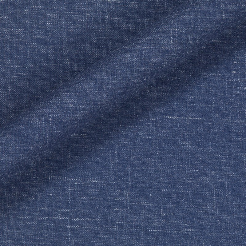 Tessuto lana seta lino stretch, falso unito blu, dall'aspetto fiammato, per un abito o una giacca con quel tocco di stravagante eleganza.