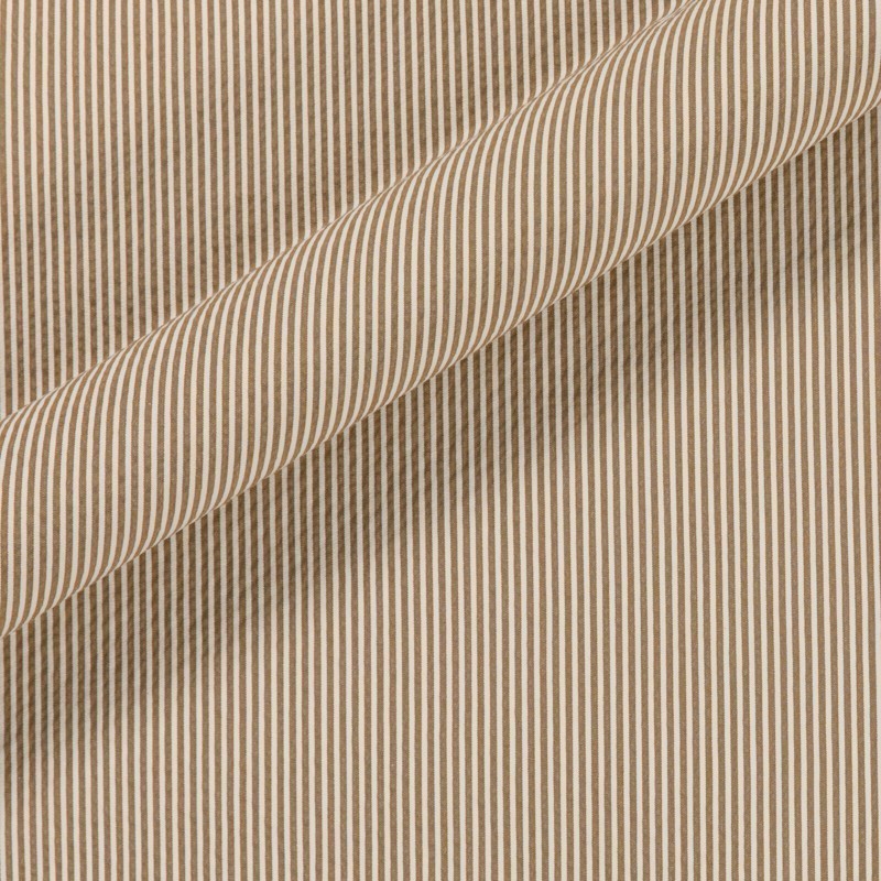 Tessuto seersucker, di cotone stretch, fantasia bacchettino bianco e beige, ideale per un look rilassato ma sempre ricercato.